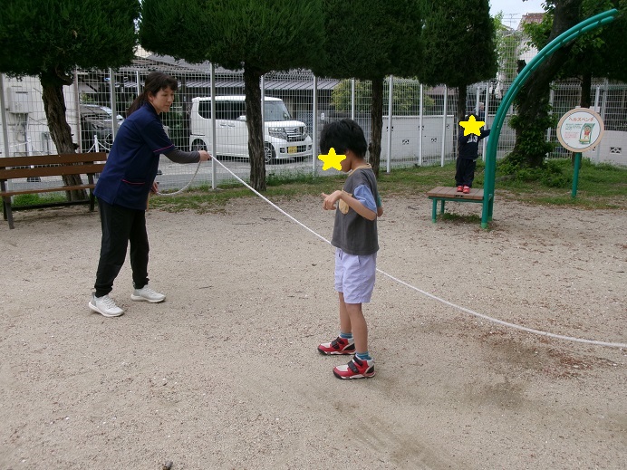 回った縄が跳べなかったお友達も、跳ぶタイミングをつかんだり、感覚がわかってきて跳べるようになりました!