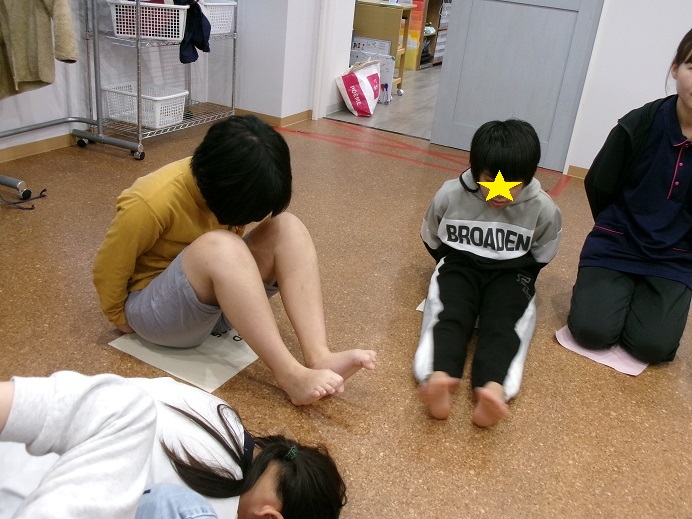 雨が降った日は、室内でヨガとハンカチ落としに取り組みました。